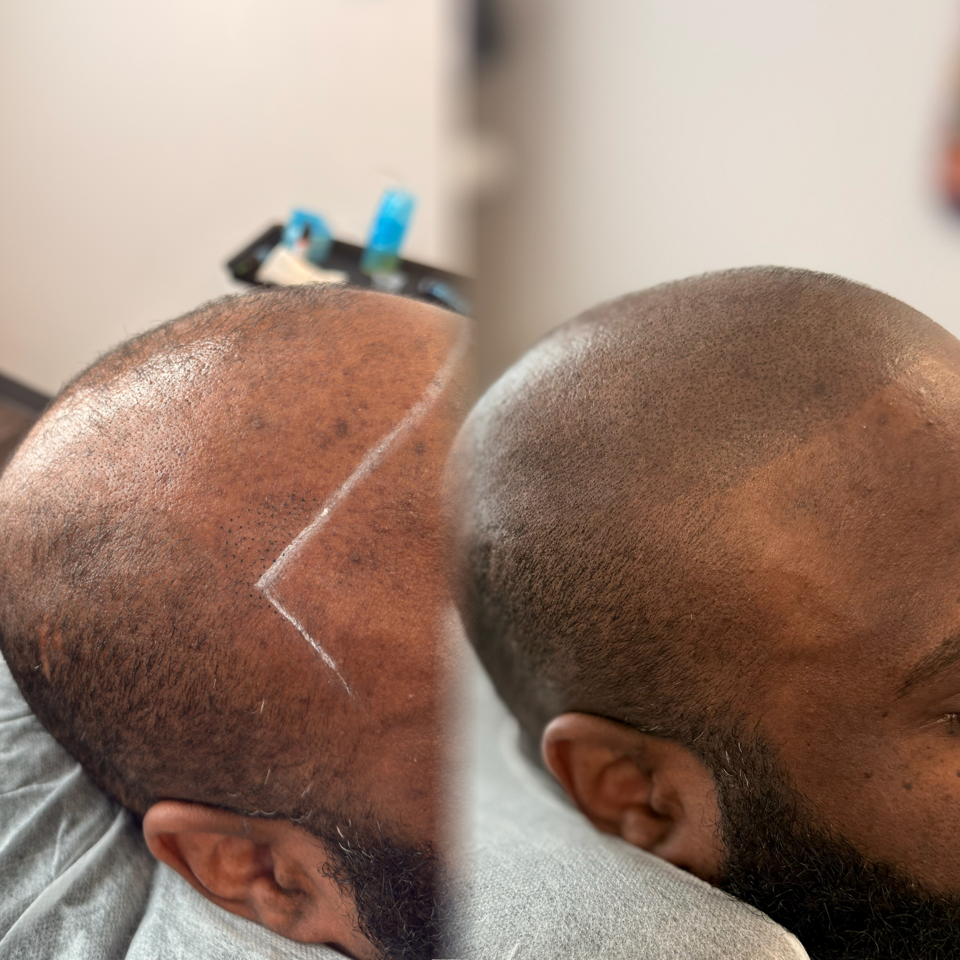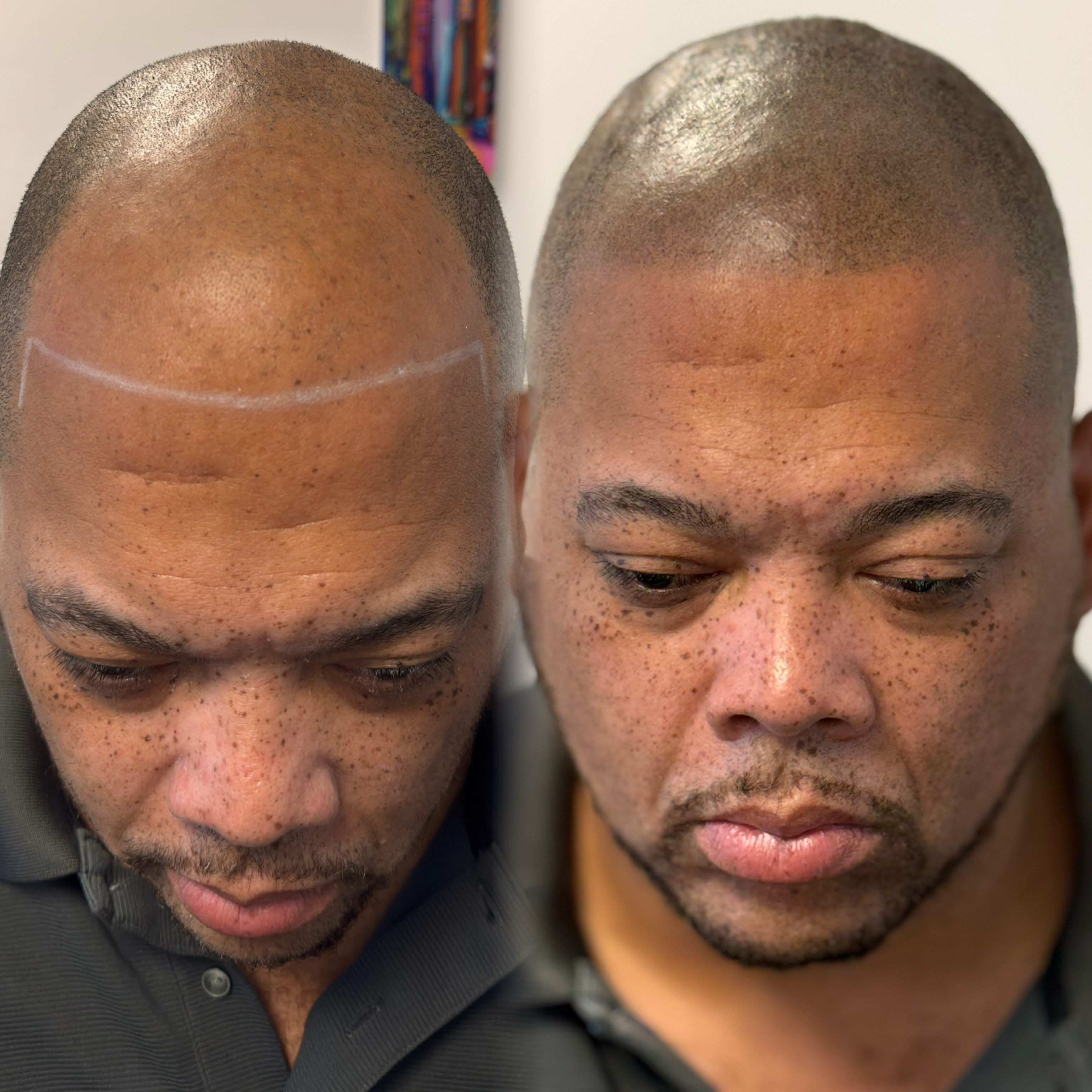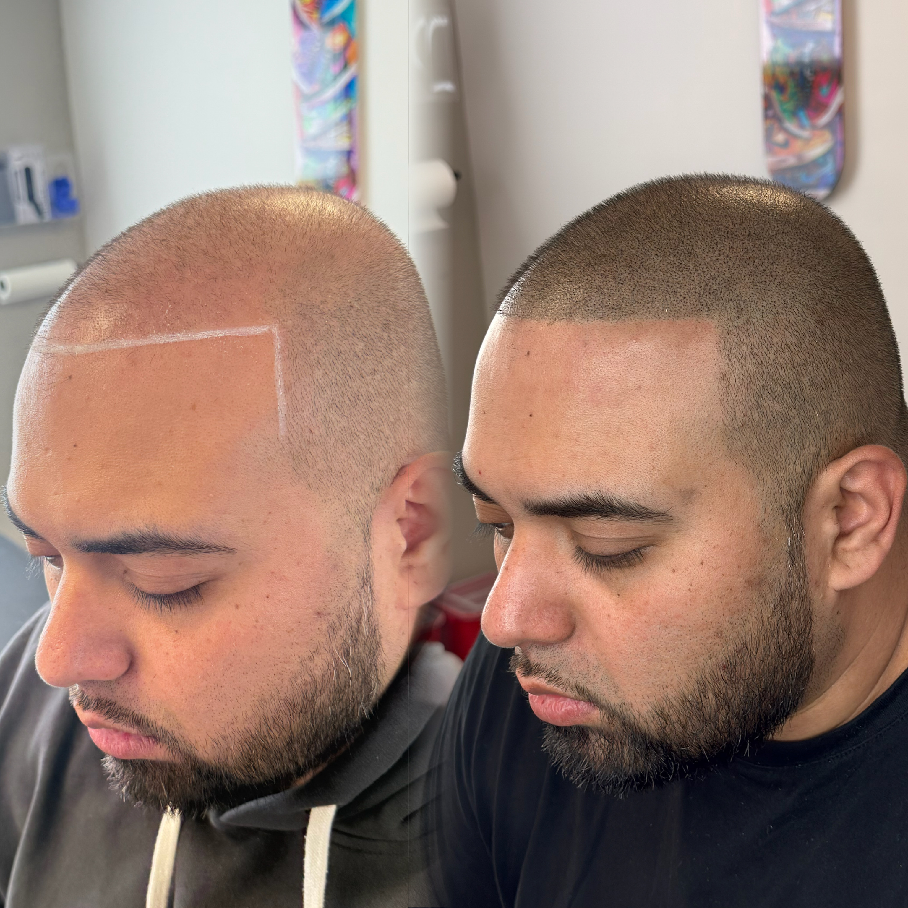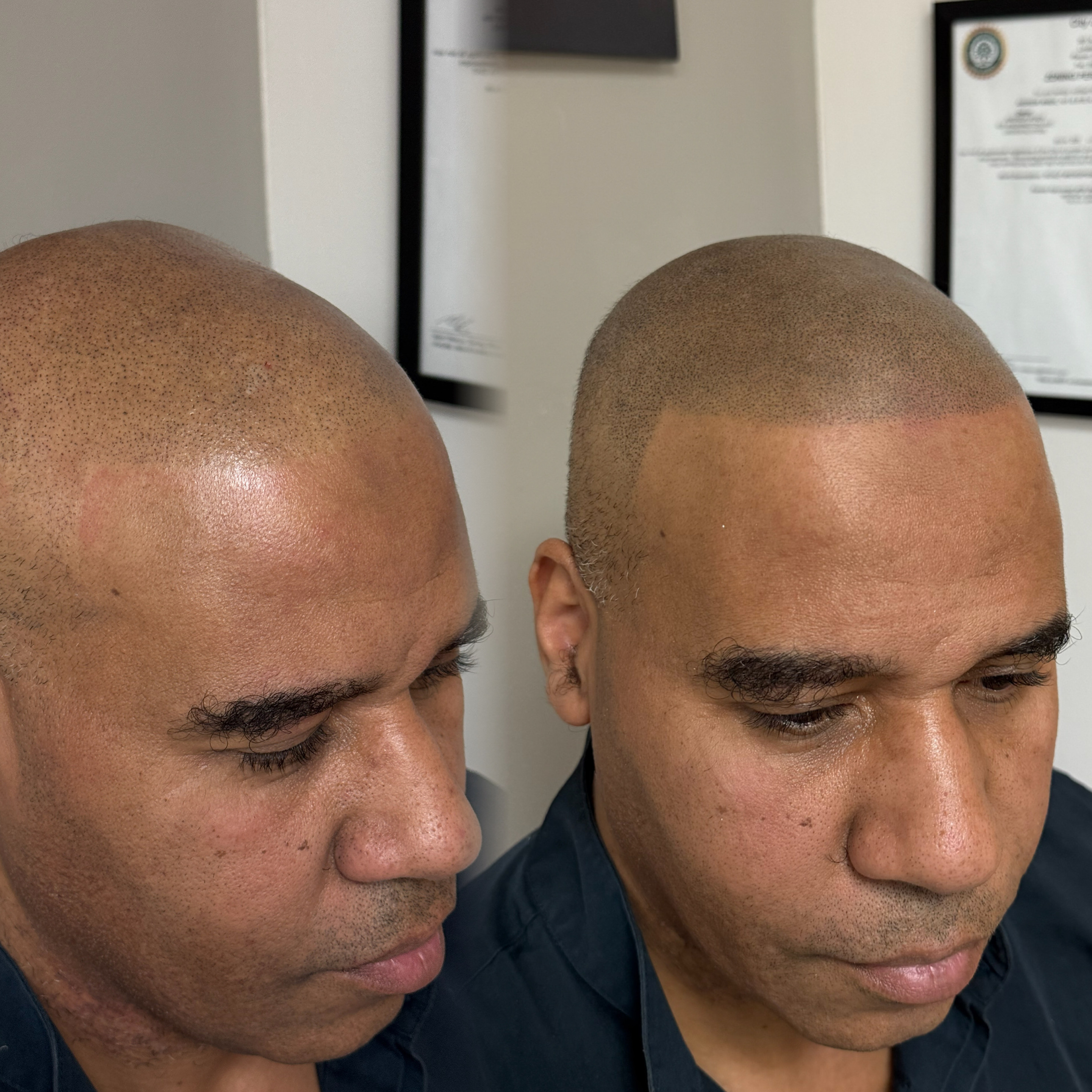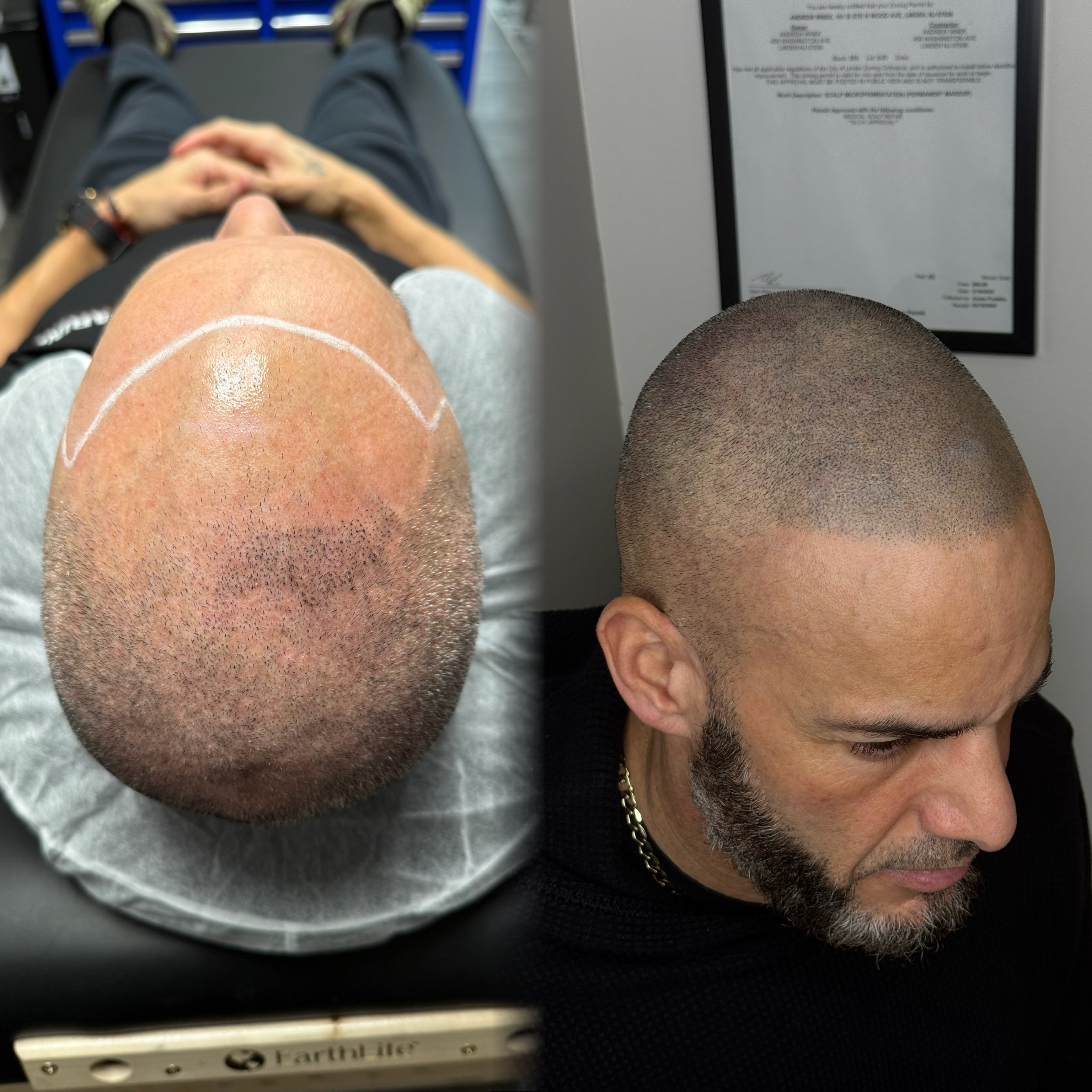 Of course! Some people call it SMP, others Scalp Micropigmentation, Hair Tattoo, Scalp Tattoo, or even Microblading of the scalp. Regardless of what you call it, we look at it as a collaborative effort between the artist and client. We will offer our professional advice on what hairline would look good on you but ultimately the choice is yours!