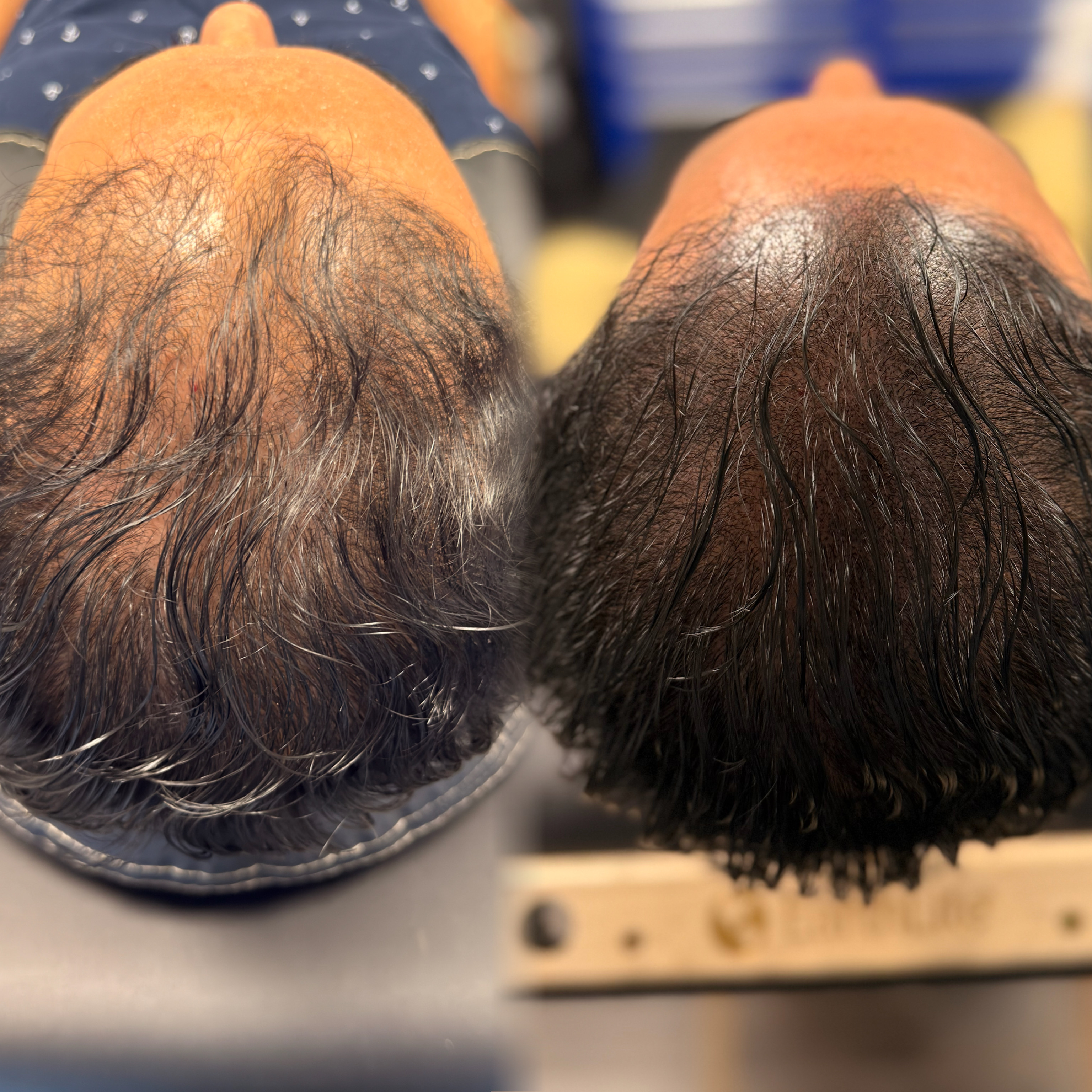 We advise our clients to expect anywhere from 2-4 sessions. In order to achieve the most realistic look we build upon each session with more density. This also gives our clients the power to control their look. For example if you want your hairline lower than what you initially asked for we can do that on the second or third session.